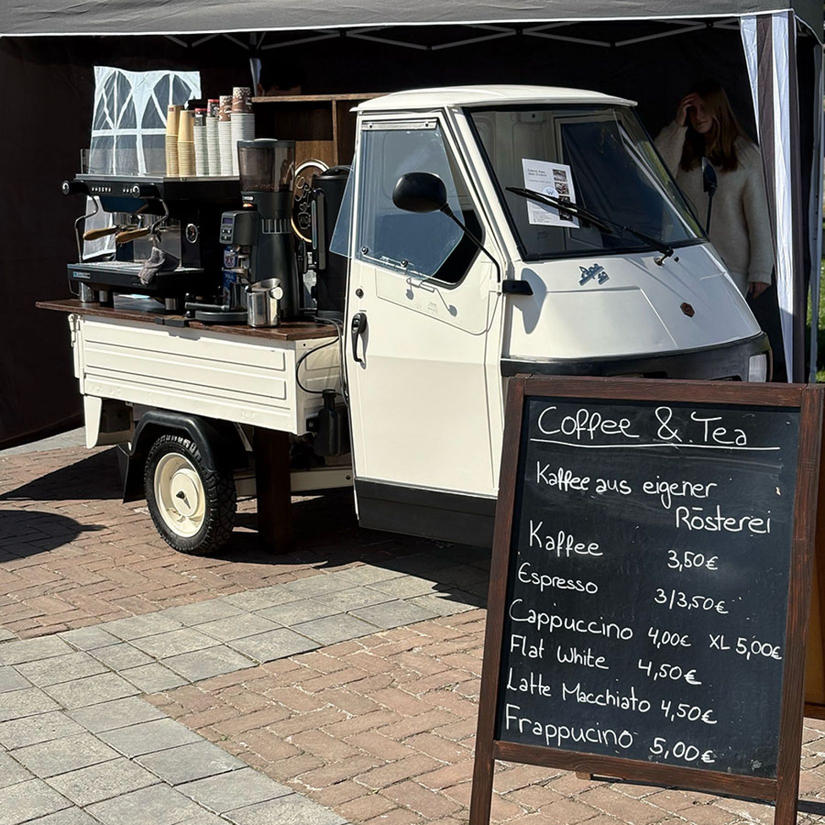 Dank modularer Ausstattung kann die Ape flexibel als Eisbar, Kaffeebar oder bald sogar als Cocktailbar gemietet werden – inklusive Barista, Service und allem Drum und Dran. Ob bei Hochzeiten, Firmenfeiern, Sommerfesten oder Geburtstagen: Die Ape bringt italienisches Flair, nostalgisches Design und kulinarischen Genuss direkt zum Veranstaltungsort.